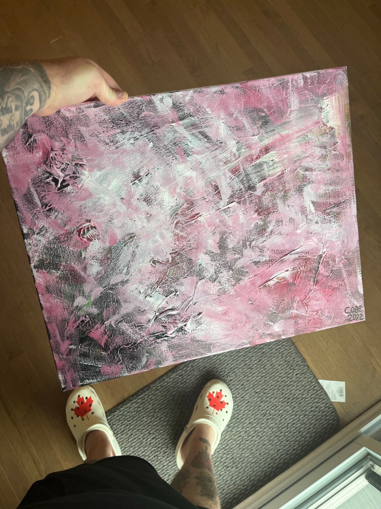 I have also been keeping up with my art practice. Been doing a lot of acrylic painting on canvas. Recently, I’ve painted a few abstract pieces, like this one pictured above. I find abstract painting incredibly therapeutic, as it’s a way for me to express myself without definable images or words. I often find it the case that the deeper concepts and emotions that my mind conjures up are difficult – if not impossible – to translate to words. This is where abstract art comes into play for me. Complex thoughts and emotions that even I can’t define or explain can be explored when splattering paint to canvas. There’s also something I find aesthetically pleasing about abstract work, and aesthetics definitely play a part in my selection of colour and brushstrokes.
